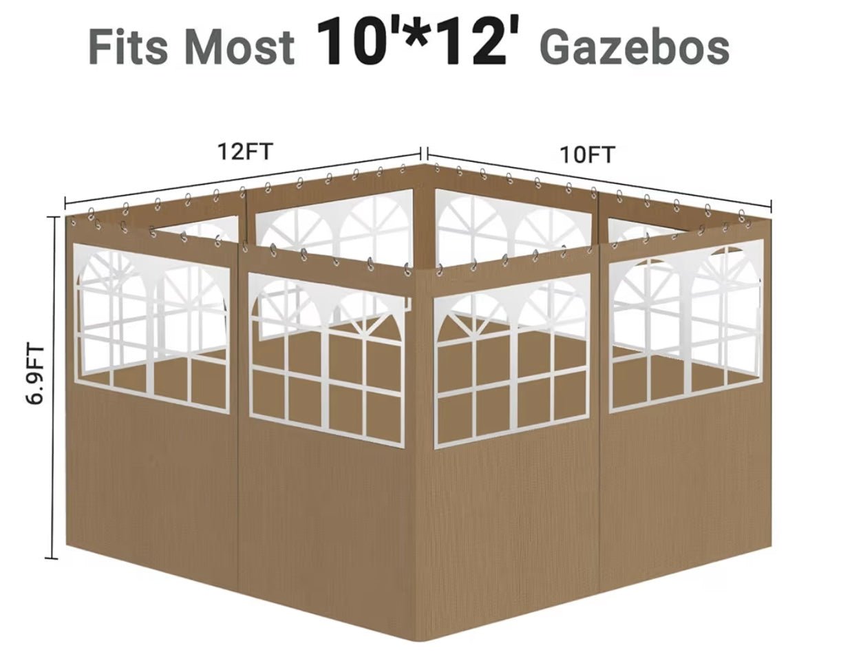 10ft x 12ft Gazebo Curtains,Privacy Replacement Sidewall with Church Window,4-Panel Universal Shade Curtains Set,Protecting Side Walls (Only Curtain)
