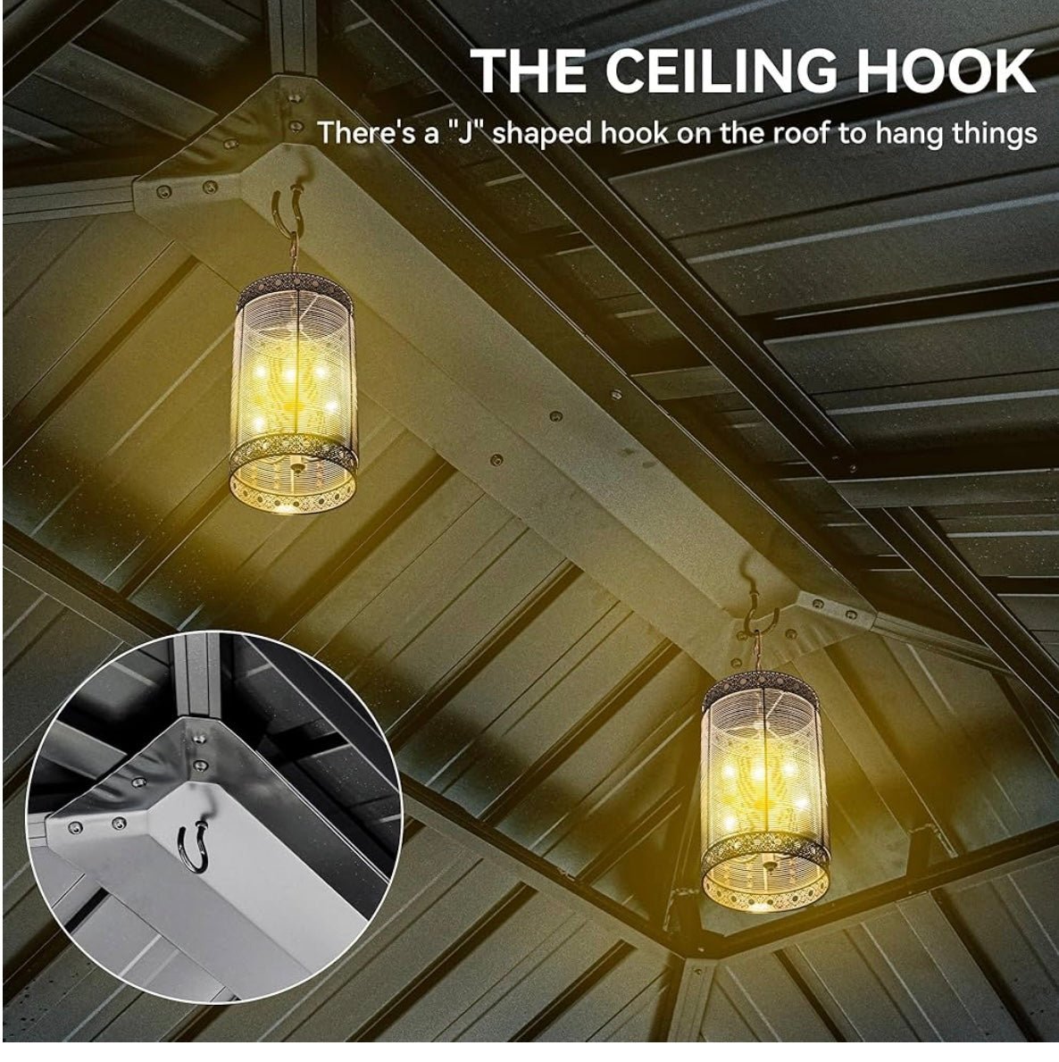 - DOUBLE GALVANIZED STEEL ROOF- Features a galvanized iron sheet top that prevents fading and prolongs lifespan. The roof is double top vented for optimum airflow and comfort during periods of strong wind. The middle of roof has two hooks that can be hung with electric lights or fans to boost your pleasant outdoor time