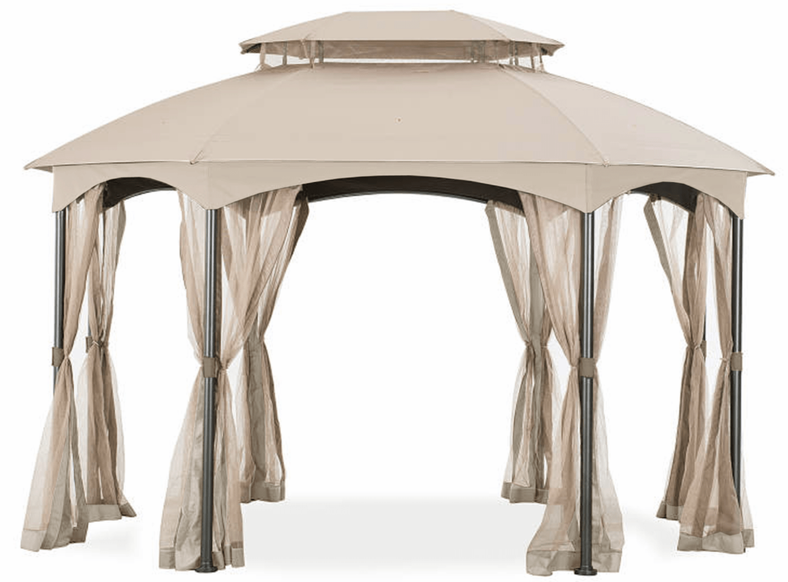 - Please note that this gazebo is an "Oval" shaped gazebo. Do not confuse this gazebo with the Heritage gazebo, which is a proper hexagon gazebo. This gazebo is elongated on two sides. The top tier of this gazebo is also elongated into an "oval" shape.