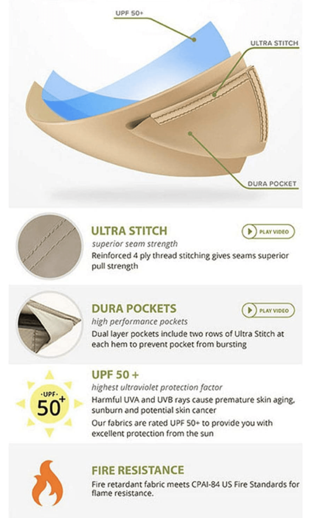 - UV-protected, water-repellent but not water proof. CPAI-84 US Standard fire-retardant fabric.