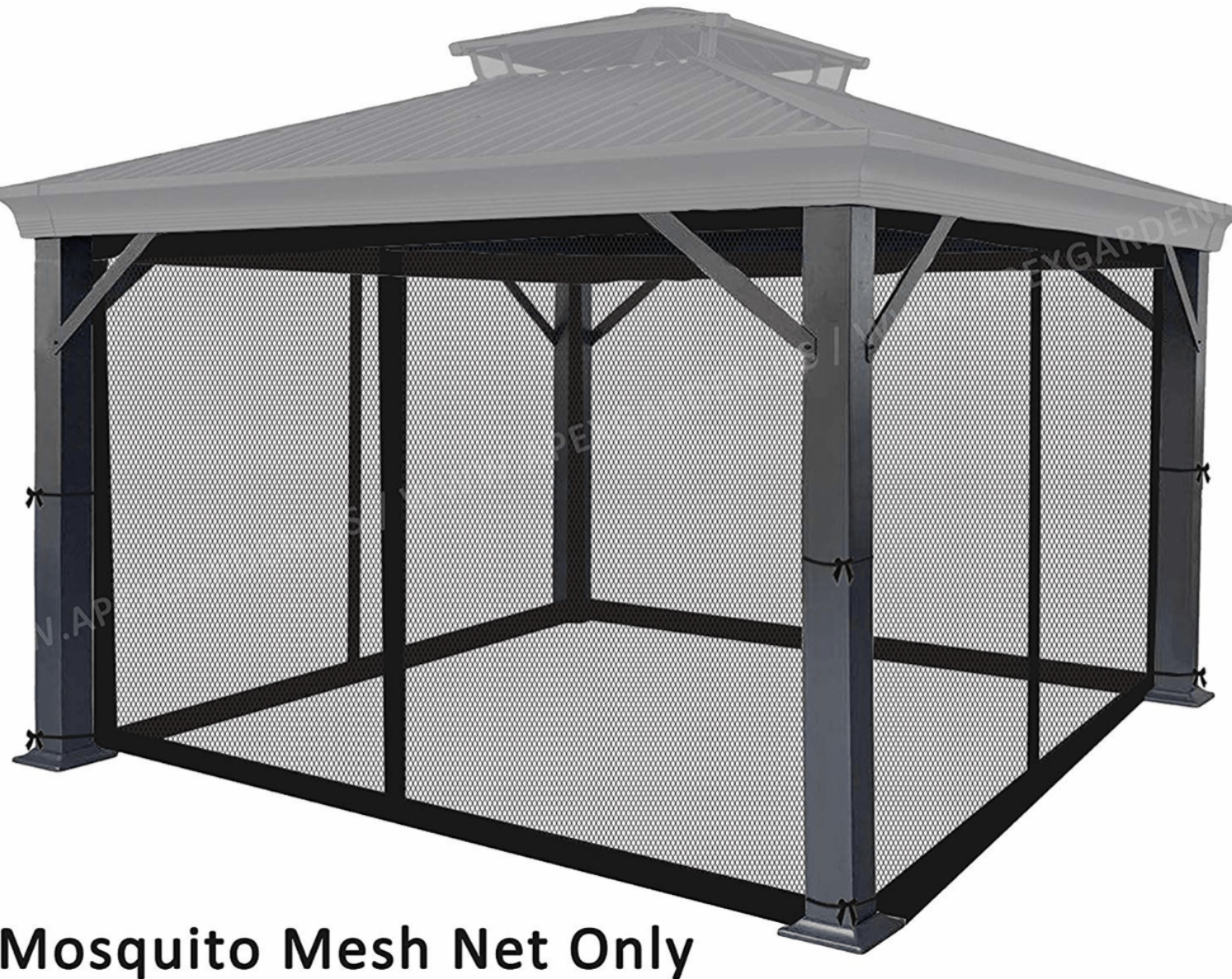 The 10x12x 84 “ high Mosquito Bug Net can fit most 10' x 12' gazebos. Replacement Insect Netting ONLY. Not including canopy and metal models. 100% polyester, Weather-resistant, CPAI-84 US Standard fire-retardant fabric. Four(4) wall enclosures. Zippers in center of each side allows for easy entry and exit. Please do the measurements of your gazebo and make sure that our product will fit it. Worry-free, produced by original factory. Grommet top. Clip Rings included. Replacement "J" Hooks sold separately. Note: Not all gazebos and sunshades are designed with netting or curtains. Before placing your order, please check the structure of your gazebo or sunshade for a track in which netting or curtains can be used. The product will include rings to hang netting or curtains.