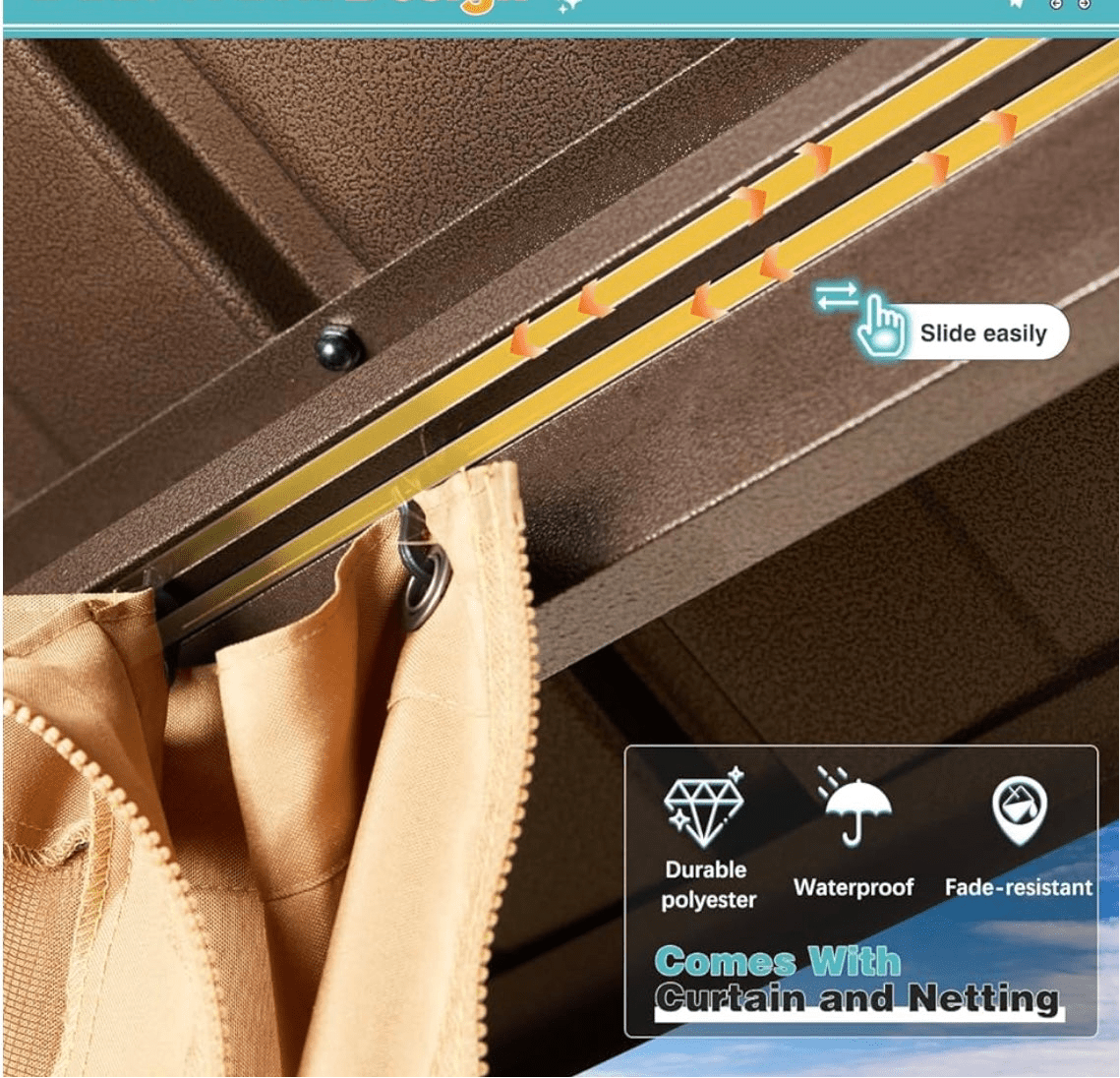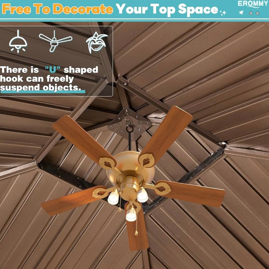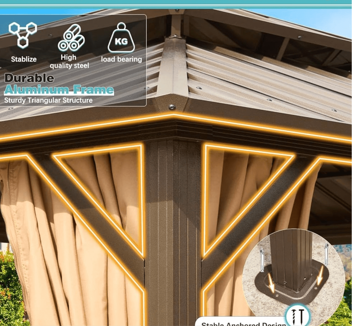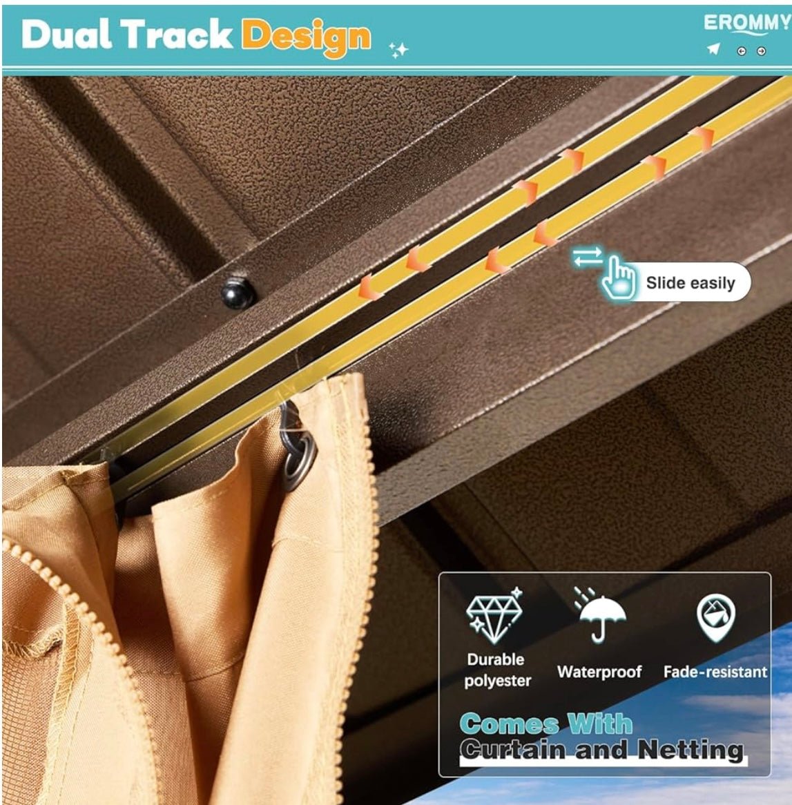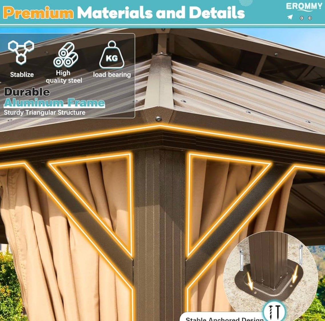 10' x 10' Hardtop Gazebo with Aluminum Frame and Galvanized Steel Double Roof Gazebos, Permanent, Outdoor, Metal Pavilion, with Curtain and Netting, for Patio, Lawn, Deck
