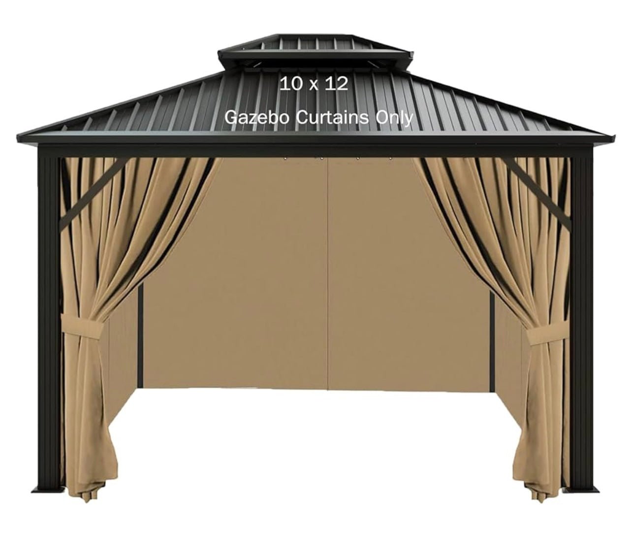 10x12 Waterproof Heavy Duty Curtain Set for Hardtop Gazebo Dark Beige