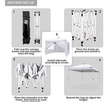 - EASY TO ASSEMBLE - Only two people are required to easily complete the entire assembly in a few minutes. Take out the canopy frame and top tarpaulin from the bag, place it on ground and unfold it, place the tarpaulin over the frame, then pull it to each corner end fully and extend the legs and it is done. Three different height settings allow you to pick the height which you want, 73inch, 77inch and 81inch. Thumb latch lock system easy to lock and release.