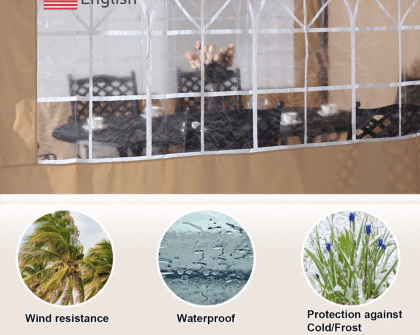 - [High-Quality Material]The rip-lock canopy top and waterproof sidewalls keep the gazebo dry and durable. It can withstand various weather elements in winter. The church window is made of thick nylon material and it can block water away.