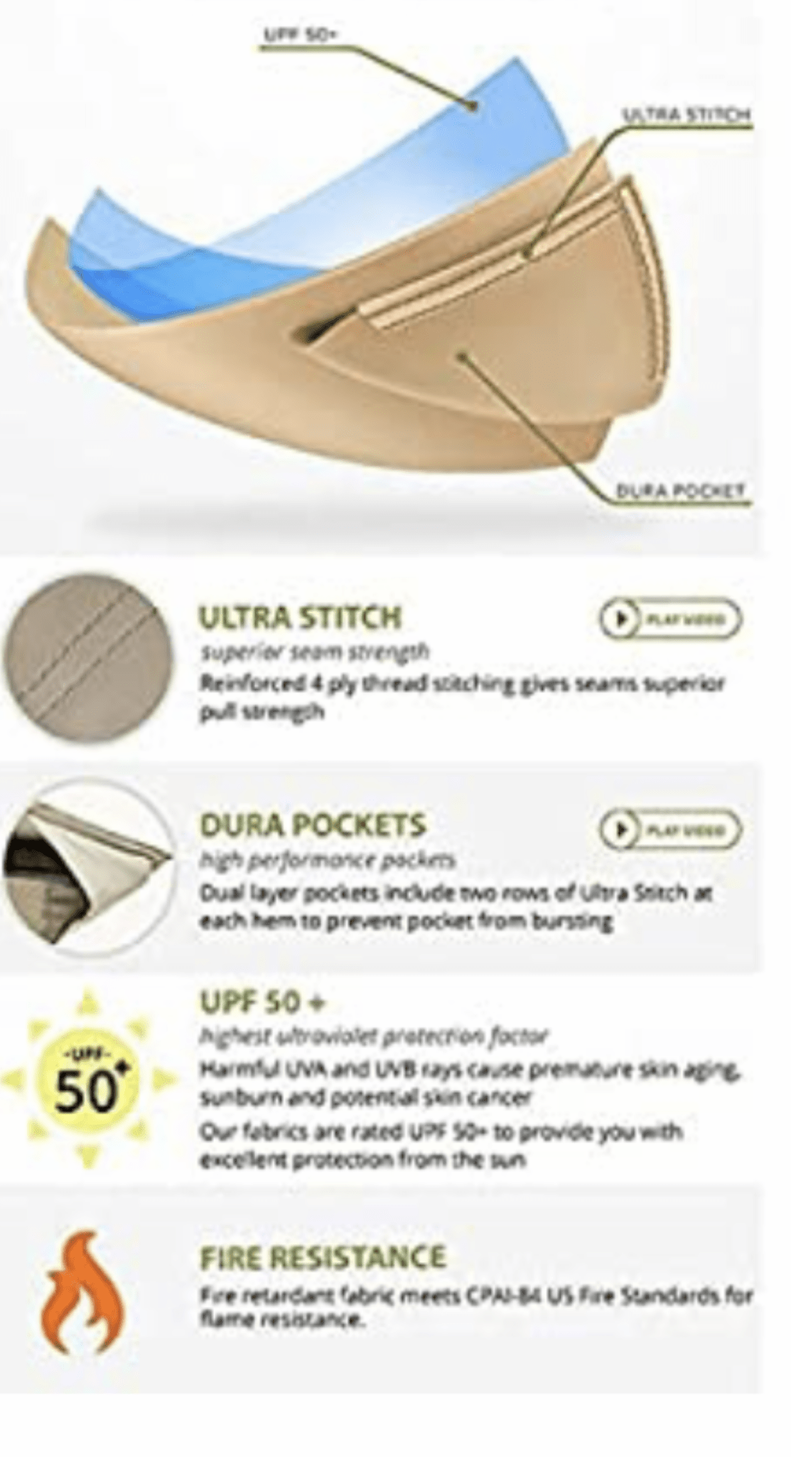 - UPF 50+, water resistant, CPAI-84 fire retardant