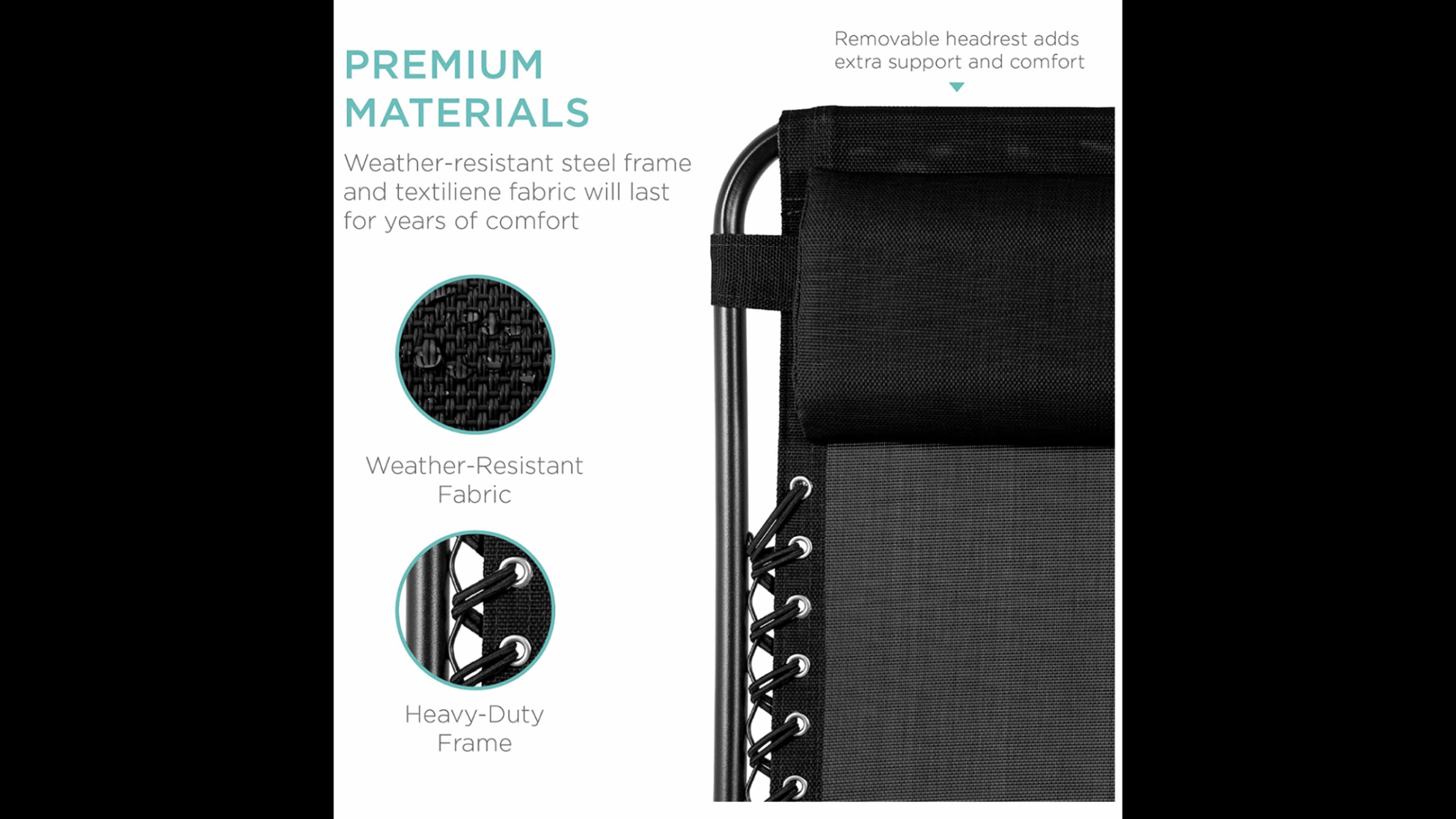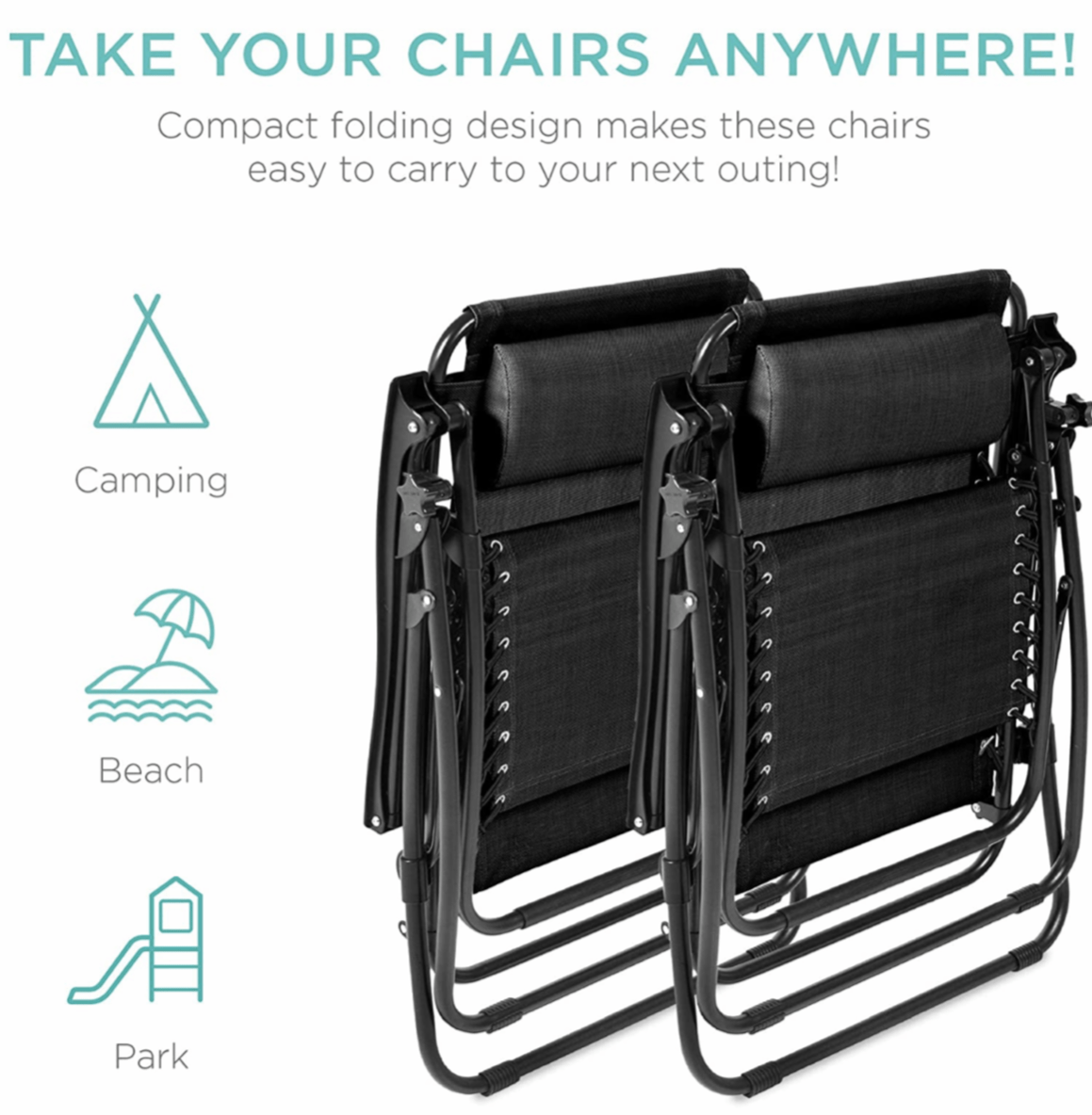 LOCKABLE RECLINING SYSTEM: Smoothly glides into an ergonomic zero-gravity position, with removable elastic cords that immediately adjust to your body's weight- PORTABLE DESIGN: Lightweight, foldable design makes these an easy addition to your next trip to the park, beach, or your child's next sporting event